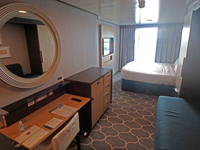 Rooms come with more options than other ships can even imagine. There’s quite a variety of suites, some of which have balconies that wrap around from outside to inside the ship with great views of the water show and boardwalk area on the inside and the ocean on the outside. There’s a 2-story high family suite with a slide from the upper level to the lower, and some other 2-level loft suites as well. Balcony and window rooms have greater than normal variety too since some come with views of Central Park, the Royal Promenade, or the Boardwalk from what would otherwise be inside cabins as well as the standard ocean view staterooms with windows or balconies facing the sea. There are some interior cabins without windows or balconies, but even some of those come with virtual ocean views.