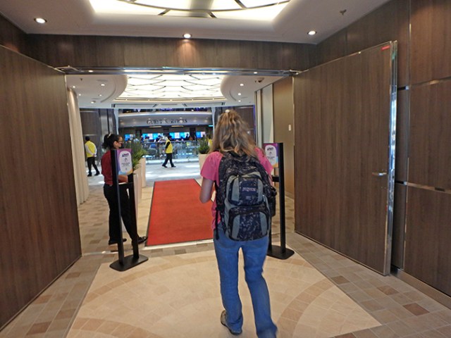 Some of the fun things on the ship aren’t on the map – you just have to find them, like the piano stairs. They’re near the elevators by the buffet between decks 15 & 16. Although each stair is not actually a piano key, they are made to look as such. They have motion sensors that play a tune when anybody walks on them. If you are the only person on the stairway you can make the song play faster or slower by going faster or slower yourself, but if there is more than one person on the stairs it just plays at normal speed.