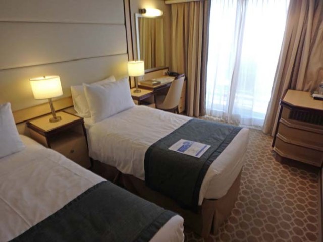 At the end of the trip we came back to Boston and spent a night at the Hyatt Regency Boston Harbor, which is literally right next to the airport. From our room we could see a bit of the harbor off to the side, but the main view straight out the window was of the airport where we could watch planes taking off and landing. Off to the other side we could see the taxi queue where rows and rows of taxis lined up before getting sent off to pick up incoming airline passengers. This hotel must have had some pretty good soundproofing as we didn’t really hear the planes much in spite of how close they were. The same can not be said for the one where I stayed in Seattle with my sister the night before flying out to Miami for our cruise.