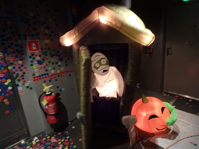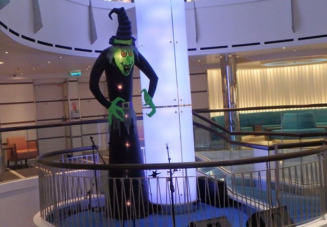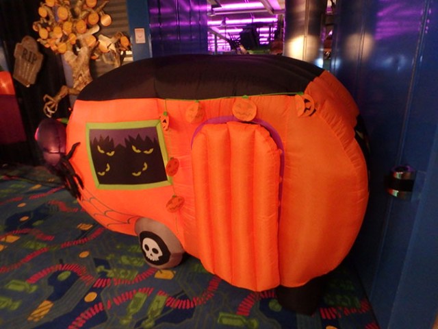 A blow-up outhouse on the Explorer of the seas had some animation with a working door, which a blow-up pumpkin opened, snickering. The mummy inside was not so happy.