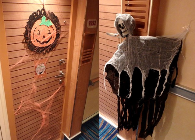 Sometimes passengers get into the spirit of Halloween with their own door decorations.