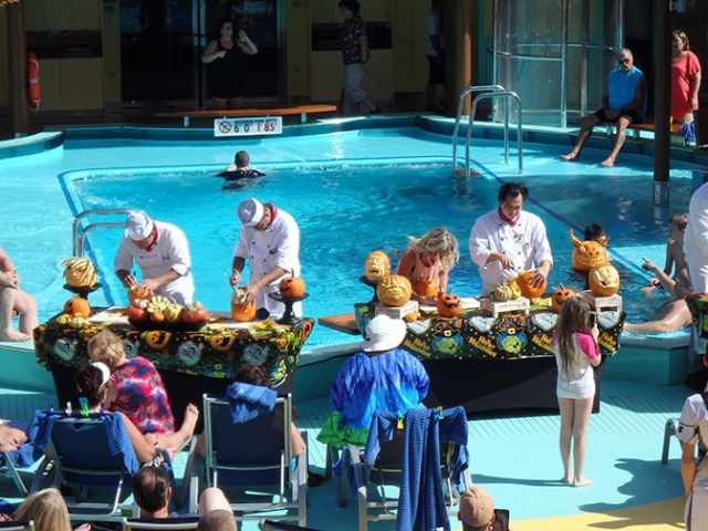 Halloween activities on a ship might include things like pumpkin carving, costume contests, a Halloween party, or games. The ship’s kid’s clubs arrange activities for the little ones like their own parties or trick-or-treating at the ship’s shops.